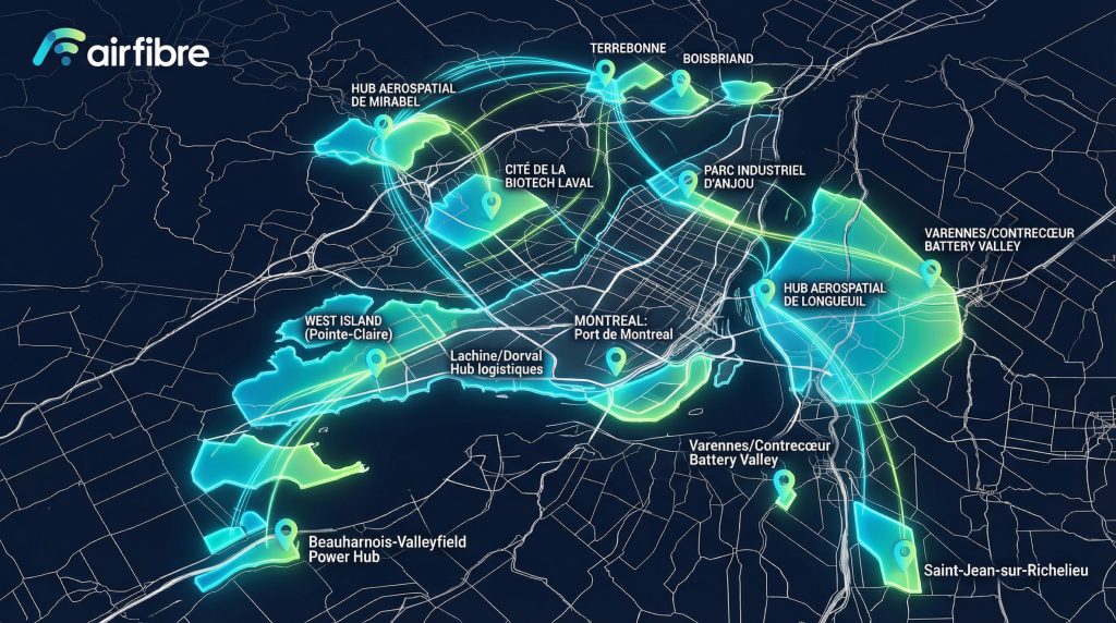 Une fois le signal reçu par l’antenne sur votre toit, il est acheminé directement à l’intérieur de votre bâtiment. Il alimente ensuite vos bureaux, vos équipements TI, vos systèmes de production et vos opérations numériques, exactement comme une connexion filaire traditionnelle mais sans les contraintes physiques.