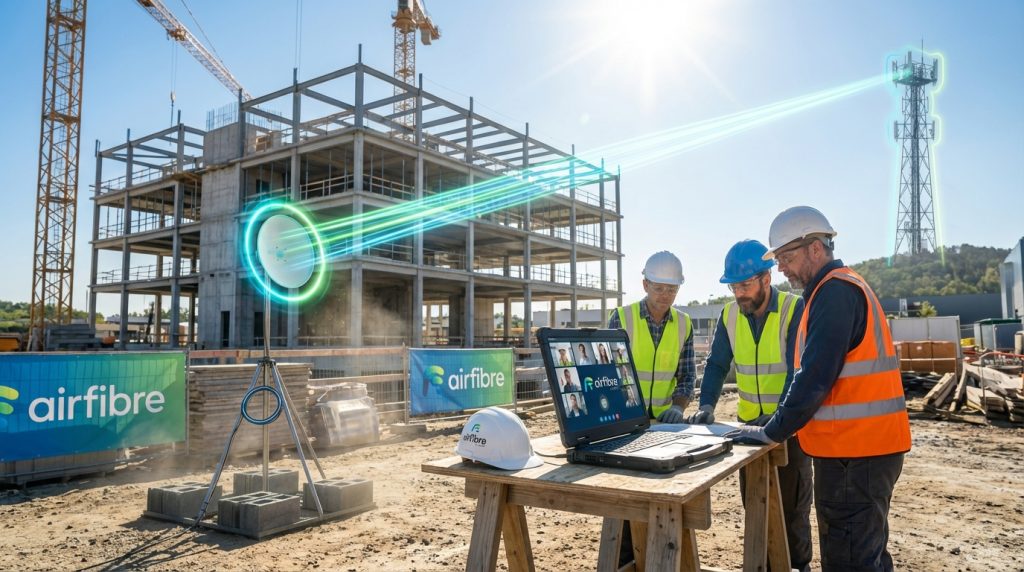 Connexion haute vitesse fiable pour chantiers de construction. Disponible là où les grands réseaux ne se rendent pas.